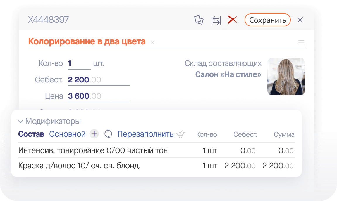 Карточки с фото и описанием, создание прайсов, штрихкодов, настройка цен и скидок.
