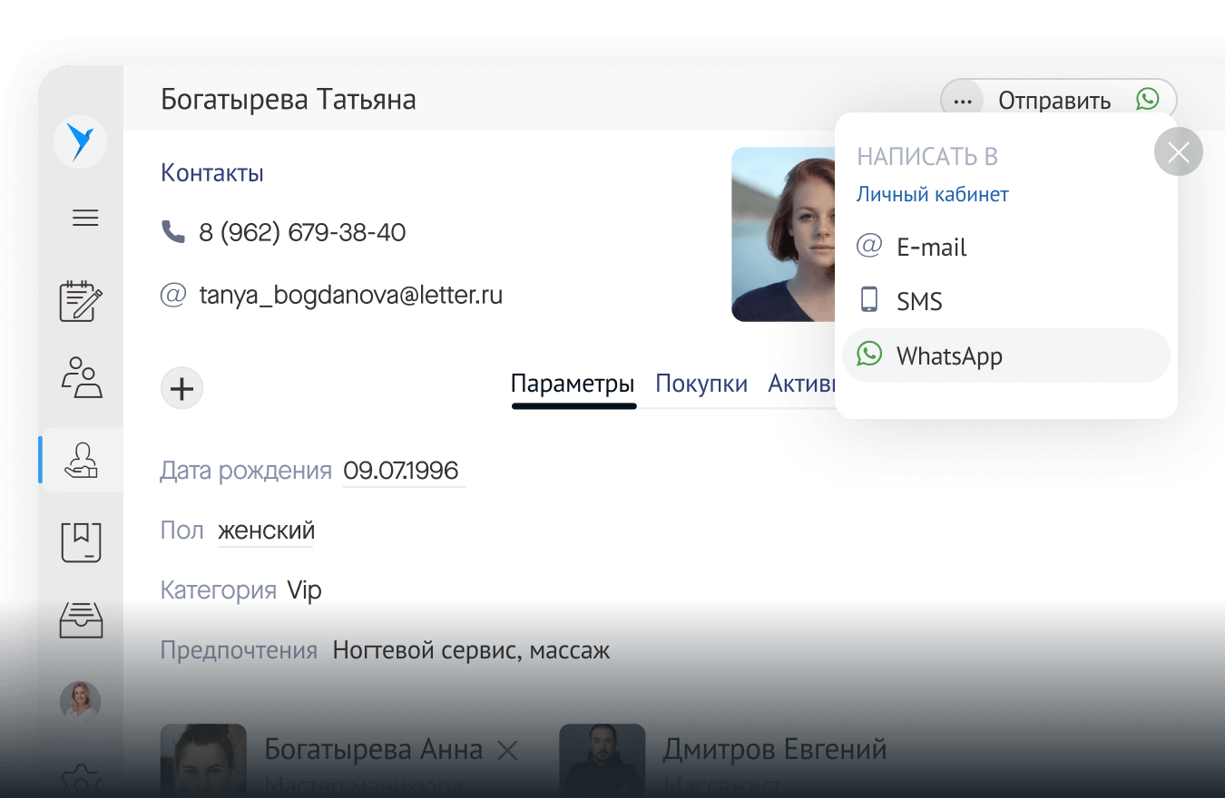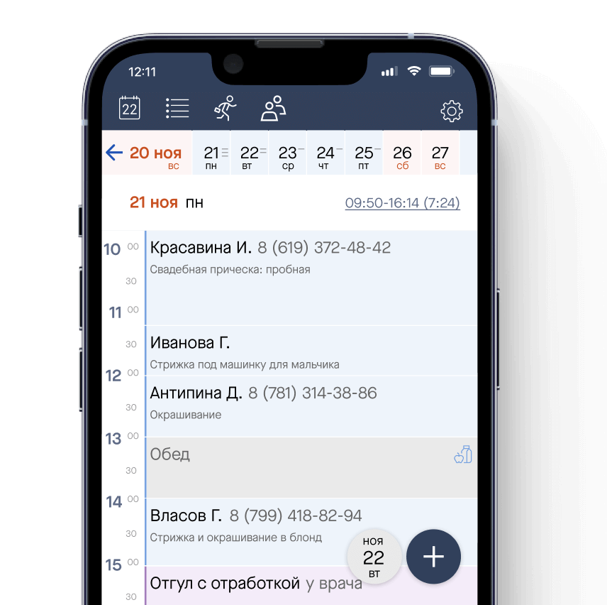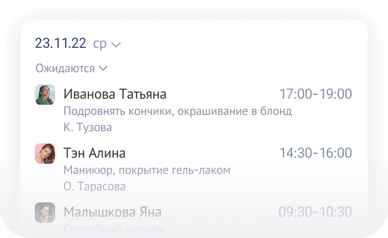 о новых клиентах. Все записи автоматически добавляются в журнал и календарь сотрудников